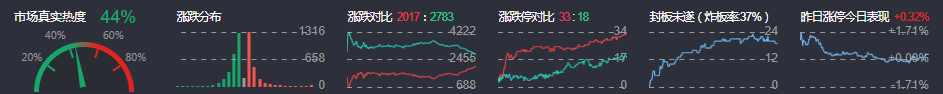 3、两市共2017只个股上涨,33只个股涨停,2783只个股下跌,18只个股跌停,17只股票炸板,炸板率37%。