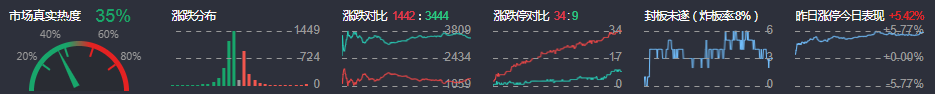 3、两市共1442只个股上涨,34只个股涨停,3444只个股下跌,9只个股跌停,2只股票炸板,炸板率8%。