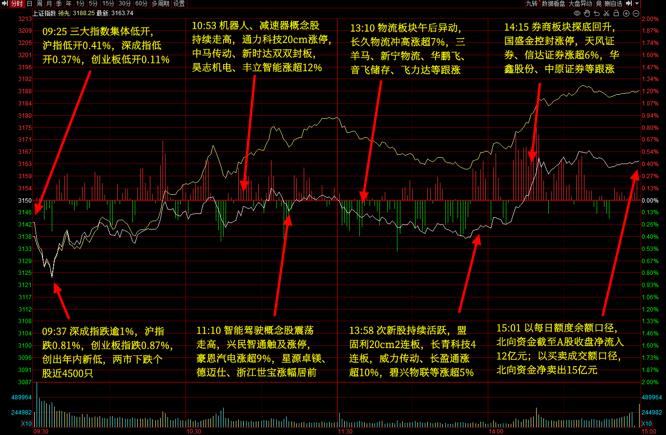 主力净流入概念板块前五:机器人,减速器,云计算数据中心,大消费,智能制造;