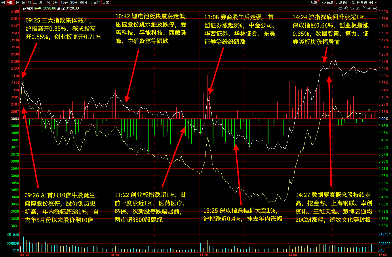主力净流入个股前十:中国联通、工业富联、金桥信息、人民网、鸿博股份、中国电信、浪潮信息、中兴通讯、N恒达、中金公司