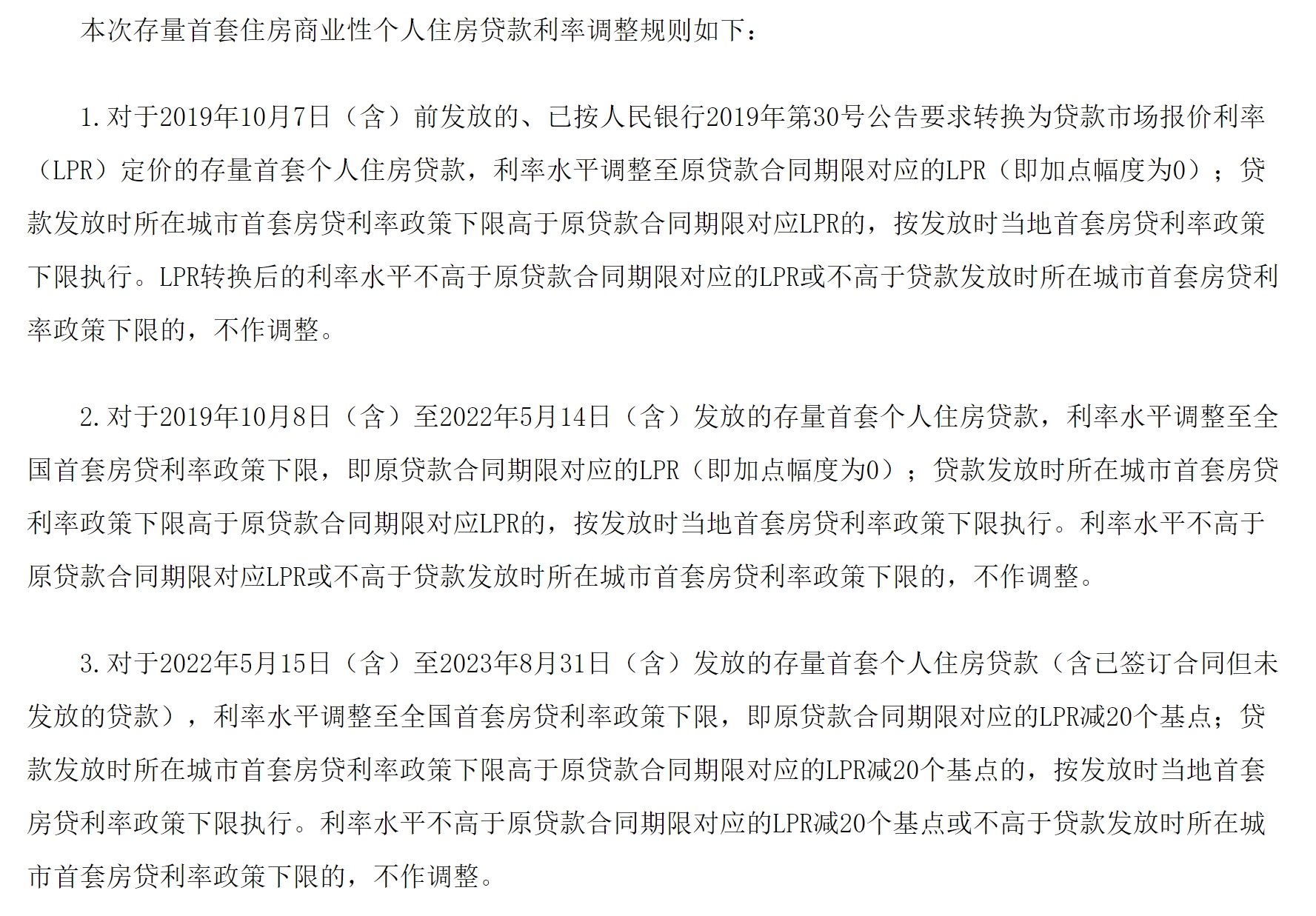 中国农业银行发布关于降低存量首套住房贷款利率有关操作事项的公告 中国农业银行:我行主要采取变更贷款利率方式。我行将于2023年9月25日起主动进行批量下调,无需客户申请。如客户需新发放贷款置换的,请于2023年9月25日起向贷款经办行提出书面申请。 风险提示及免责条款 市场有风险,投资需谨慎。本文不构成个人投资建议,也未考虑到个别用户特殊的投资目标、财务状况或需要。用户应考虑本文中的任何意见、观点或结论是否符合其特定状况。据此投资,责任自负。