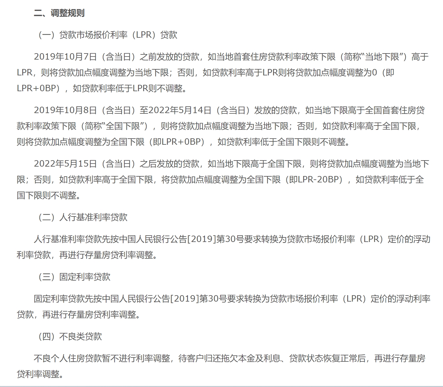 中国银行:存量首套住房贷款客户无需申请,我行将于2023年9月25日集中调整,利率调整后于当日起按新的利率水平执行,此前利息均按原合同利率水平计算。对二套及以上房贷且符合调整条件、固定利率或基准利率定价且完成LPR转换、不良贷款归还积欠本息的房贷客户,可于2023年9月25日至10月22日(含当日)向我行提出申请。我行将于10月25日对已受理并审批通过的进行集中调整,利率调整后于当日起按新的利率水平执行,此前利息均按原合同利率水平计算。
