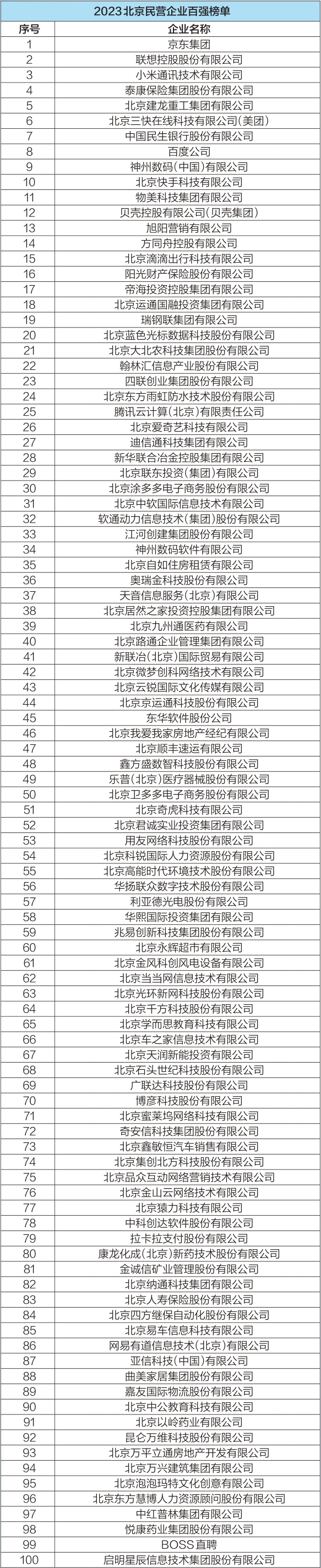 北京民营企业百强呈现以下特征:一是百强企业持续做大做强,引领首都民营经济蓬勃发展。百强入围门槛为44.37亿元,同比增长10.51%;资产总额同比增长超2倍,税后净利润增长超二成,企业展现强大韧性。二是百强企业高质量发展成色足,带动相关产业优化升级。近三成企业为“高精尖”,超四成属于信息技术、金融和科技服务业;科技百强研发投入强度达18.4%,是本市平均水平的近3倍。三是百强企业高标准践行社会责任,服务国家重大战略有成效。吸纳就业达191.7万人,创造新增就业超22万个,89家(次)企业参与京津冀协同发展和“一带一路”建设。(北京日报)