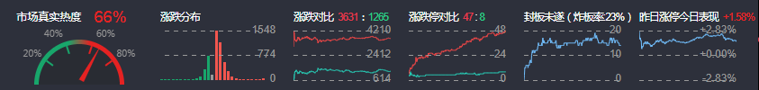 3、两市共3631只个股上涨,47只个股涨停,1265只个股下跌,8只个股跌停,12只股票炸板,炸板率23%。