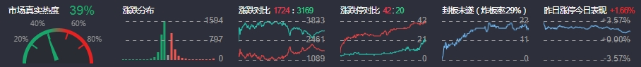 3、两市共1724只个股上涨,42只个股涨停,3169只个股下跌,20只个股跌停,15只股票炸板,炸板率29%。