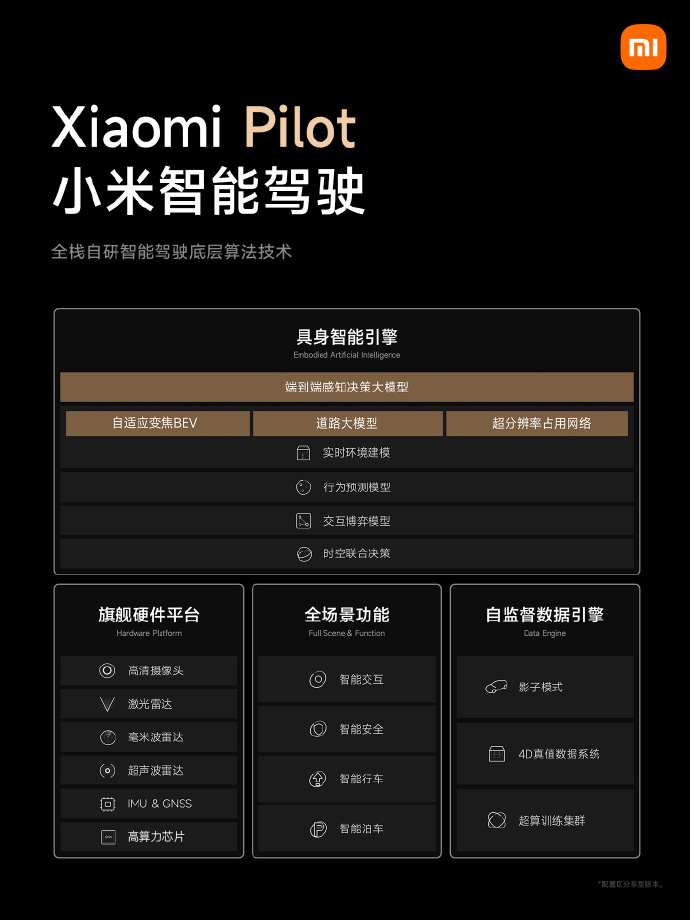 小米汽车:小米智能驾驶来自全栈自研智能驾驶技术,变焦BEV、道路大模型、超分辨率占用网络;2024年,小米智能驾驶进入行业第一阵营。 风险提示及免责条款 市场有风险,投资需谨慎。本文不构成个人投资建议,也未考虑到个别用户特殊的投资目标、财务状况或需要。用户应考虑本文中的任何意见、观点或结论是否符合其特定状况。据此投资,责任自负。