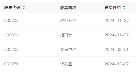深交所上市公司2023年年报预约披露时间出炉,聚灿光电、指南针拔得头筹,将于1月27日率先披露;青岛中程将于2月1日披露。 风险提示及免责条款 市场有风险,投资需谨慎。本文不构成个人投资建议,也未考虑到个别用户特殊的投资目标、财务状况或需要。用户应考虑本文中的任何意见、观点或结论是否符合其特定状况。据此投资,责任自负。
