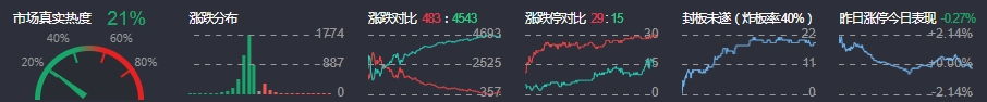 3、两市共483只个股上涨,29只个股涨停,4543只个股下跌,15只个股跌停,19只股票炸板,炸板率40%。