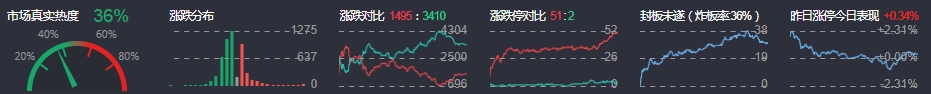 3、两市共1495只个股上涨,51只个股涨停,3410只个股下跌,2只个股跌停,26只股票炸板,炸板率36%。