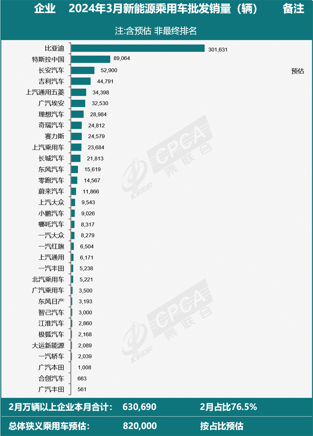 乘联会:预估2024年3月全国新能源乘用车厂商批发销量82万辆,同比增长33%,环比增长84%。 风险提示及免责条款 市场有风险,投资需谨慎。本文不构成个人投资建议,也未考虑到个别用户特殊的投资目标、财务状况或需要。用户应考虑本文中的任何意见、观点或结论是否符合其特定状况。据此投资,责任自负。