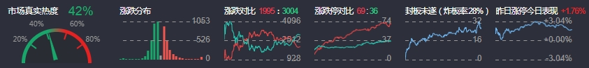 3、两市共1995只个股上涨,69只个股涨停,3004只个股下跌,36只个股跌停,25只股票炸板,炸板率28%。