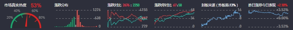 3、两市共2676只个股上涨,67只个股涨停,2250只个股下跌,58只个股跌停,8只股票炸板,炸板率13%。