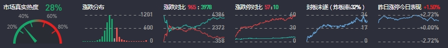 3、两市共964只个股上涨,57只个股涨停,3979只个股下跌,10只个股跌停,24只股票炸板,炸板率32%。