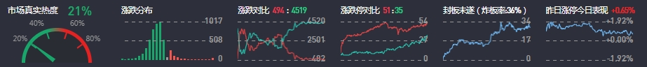 3、两市共494只个股上涨,51只个股涨停,4519只个股下跌,35只个股跌停,22只股票炸板,炸板率36%。