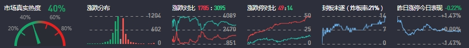 3、两市共1785只个股上涨,49只个股涨停,3095只个股下跌,14只个股跌停,7只股票炸板,炸板率21%。