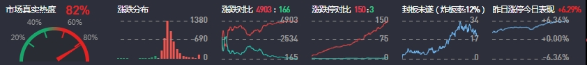3、两市共4903只个股上涨,150只个股涨停,166只个股下跌,3只个股跌停,17只股票炸板,炸板率12%。