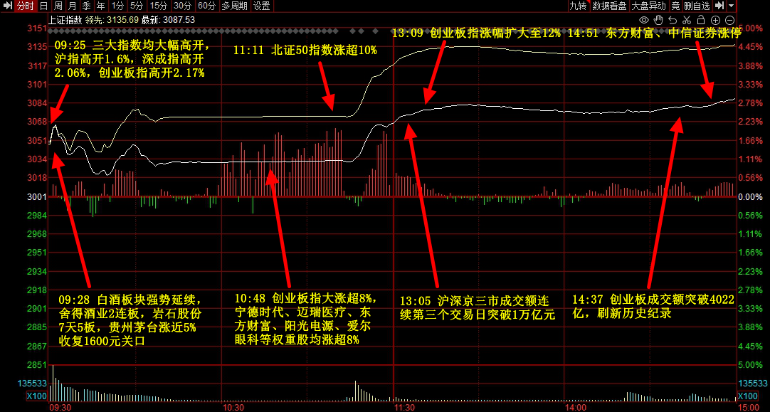主力净流入个股前十:东方财富、药明康德、宁德时代、润和软件、五粮液、浪潮信息、泸州老窖、贵州茅台、中兴通讯、山西汾酒