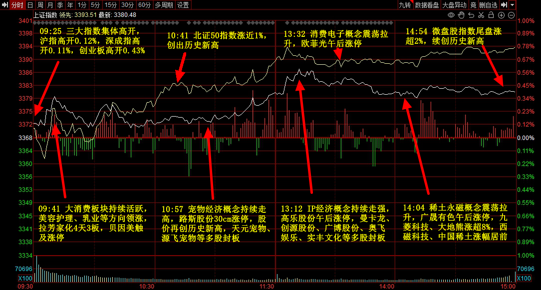 主力净流入行业板块前五:医药,创新药,食品,游戏,新能源汽车;
