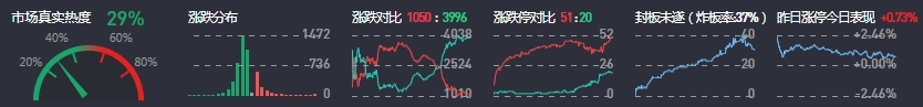 3、两市共1050只个股上涨,51只个股涨停,3996只个股下跌,20只个股跌停,25只股票炸板,炸板率37%。