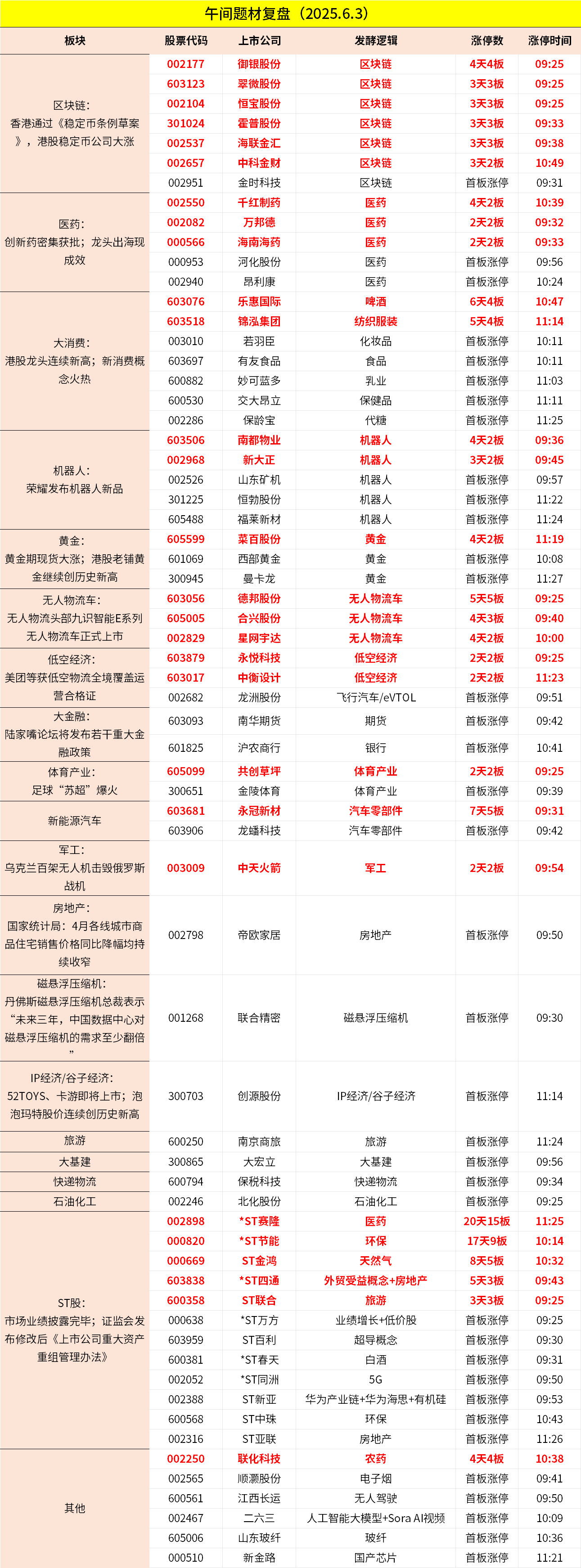 1、市场早间低开高走,三大指数集体上涨。新消费概念反复活跃,创源股份、锦泓集团、若羽臣、乐惠国际等多股涨停。银行等金融股继续走强,沪农商行涨停,杭州银行、中信银行刷新历史高点。创新药概念延续强势,海南海药、万邦德、昂利康等封板。下跌方面,钢铁、电力板块下挫,本钢板材、长源电力跌超6%。个股涨多跌少,沪深京三市超3300股飘红,上午半天成交7640亿。午间收盘沪指涨0.48%,深成指涨0.35%,创业板涨0.73%。