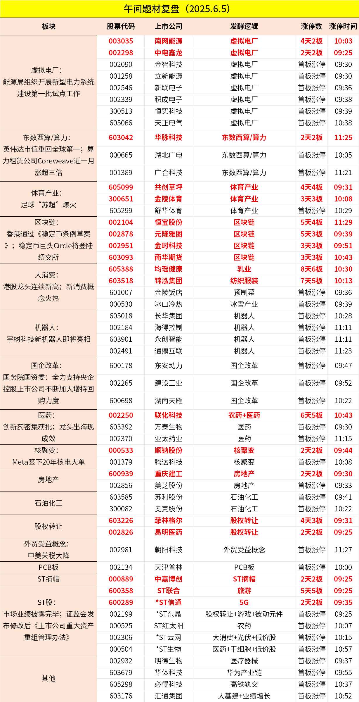 1、市场早间窄幅震荡,三大指数小幅上涨。虚拟电厂概念股走强,恒实科技、金智科技、积成电子等多股涨停。足球概念股延续强势,金陵体育、共创草坪、舒华体育等涨停。算力硬件股再度走强,天津普林、广合科技涨停,胜宏科技涨超9%创新高。下跌方面,大消费股集体调整,曼卡龙跌超10%。个股跌多涨少,沪深京三市超3000股飘绿,上午半天成交7286亿。午间收盘沪指涨0.08%,深成指涨0.16%,创业板涨0.32%。