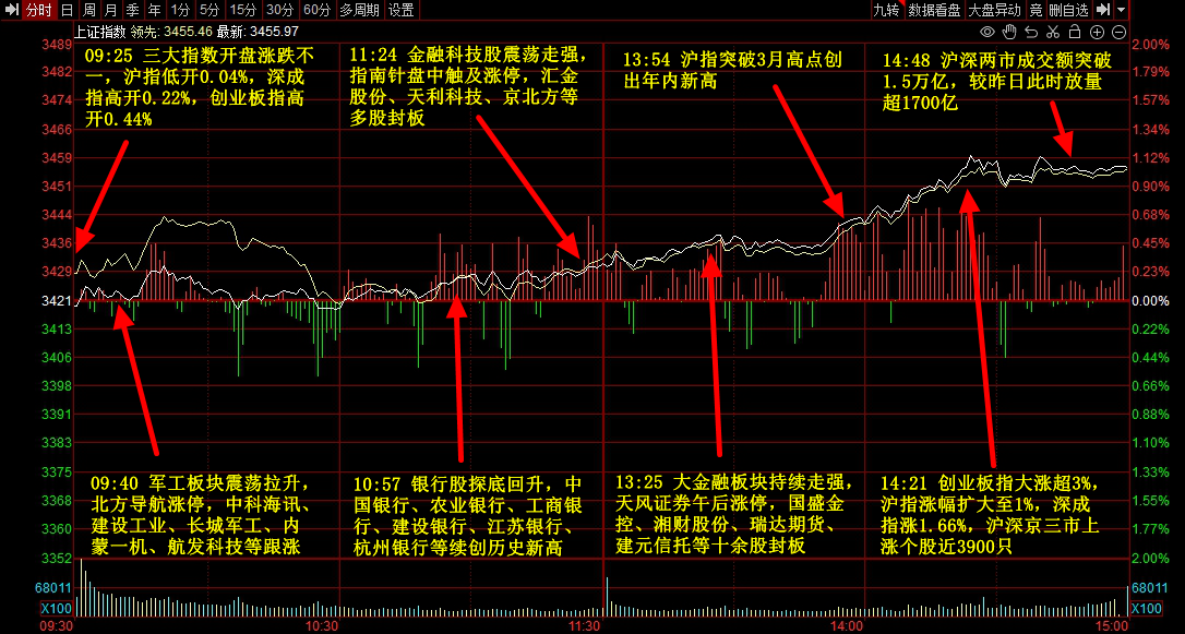 主力净流入行业板块前五:大金融,券商,国产软件,军工,新能源汽车;