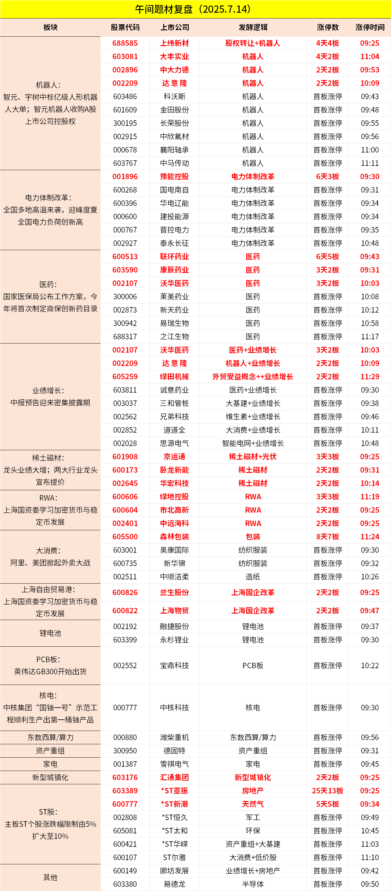 1、市场早间走势分化,沪指盘中震荡上扬,创业板指则小幅下挫。机器人概念股集体拉升,带动PEEK材料等方向走强,上纬新材、中大力德、中欣氟材等多股涨停。电力、电网概念股反复活跃,建投能源、豫能控股、国电南自等封板。下跌方面,大金融板块下挫,南华期货、大智慧跌停。两市上涨个股略大于下跌家数,上午半天成交9854亿。午间收盘沪指涨0.43%,深成指跌0.23%,创业板跌0.74%。