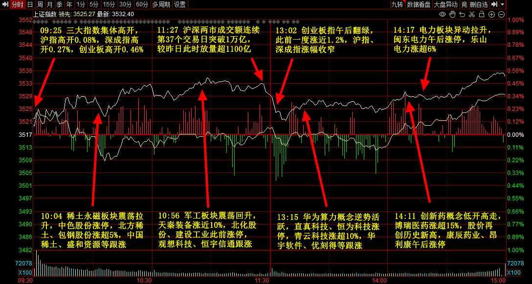 主力净流入行业板块前五:稀土磁材,军工,锂电池,有色金属,白酒;