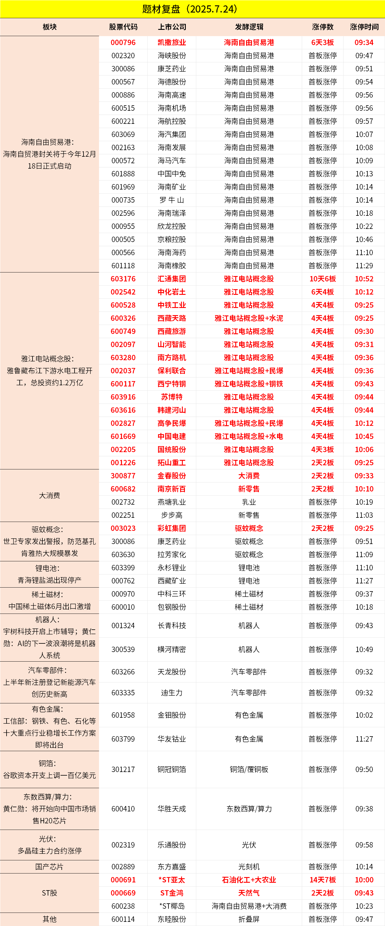 2、板块概念方面,海南自贸区、稀土永磁、驱蚊、雅江电站等板块领涨;黄金、CPO、银行、猪肉等板块下挫;