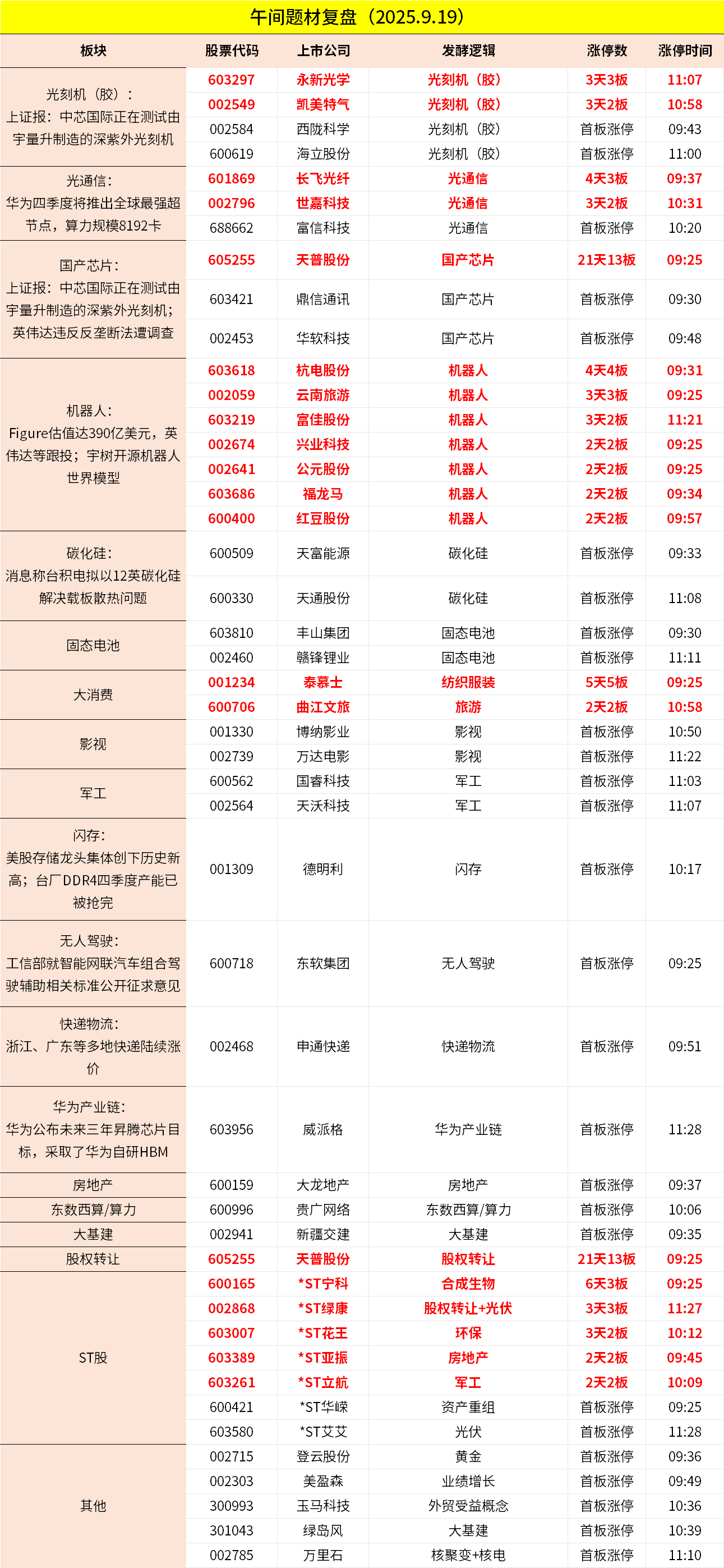 1、沪指早间小幅调整,创业板指冲高回落。光刻机概念股延续强势,西陇科学、凯美特气等多股涨停。光通信概念继续活跃,天通股份、长飞光纤等封板。锂矿股盘中拉升,赣锋锂业涨停。下跌方面,机器人概念股迎来调整,上海建工、金发科技、万向钱潮等跌停。个股跌多涨少,沪深京三市超3400股飘绿,上午半天成交1.51万亿。午间收盘沪指跌0.03%,深成指涨0.32%,创业板涨0.16%。