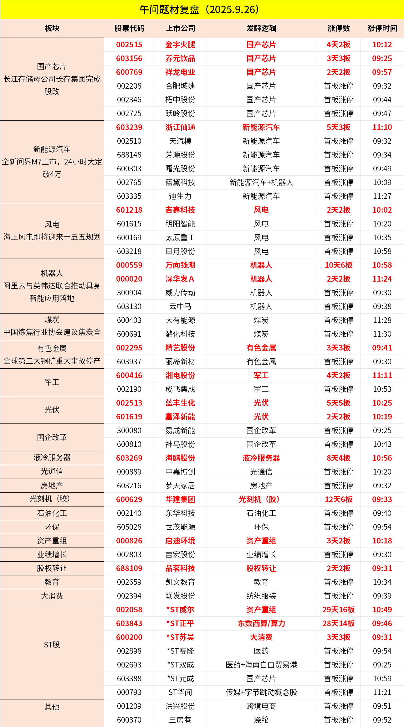 1、市场早间震荡调整,创业板指跌超1%。风电板块逆势走强,威力传动、吉鑫科技等多股涨停。半导体产业链局部回暖,赛微微电涨停续创历史新高。军工板块盘中拉升,湘电股份、成飞集成涨停。下跌方面,游戏股集体退潮,吉比特跌停;医药医疗股调整,广生堂等跌超10%。个股涨跌互现,上午半天成交1.38万亿。午间收盘沪指跌0.18%,深成指跌0.79%,创业板跌1.17%。
