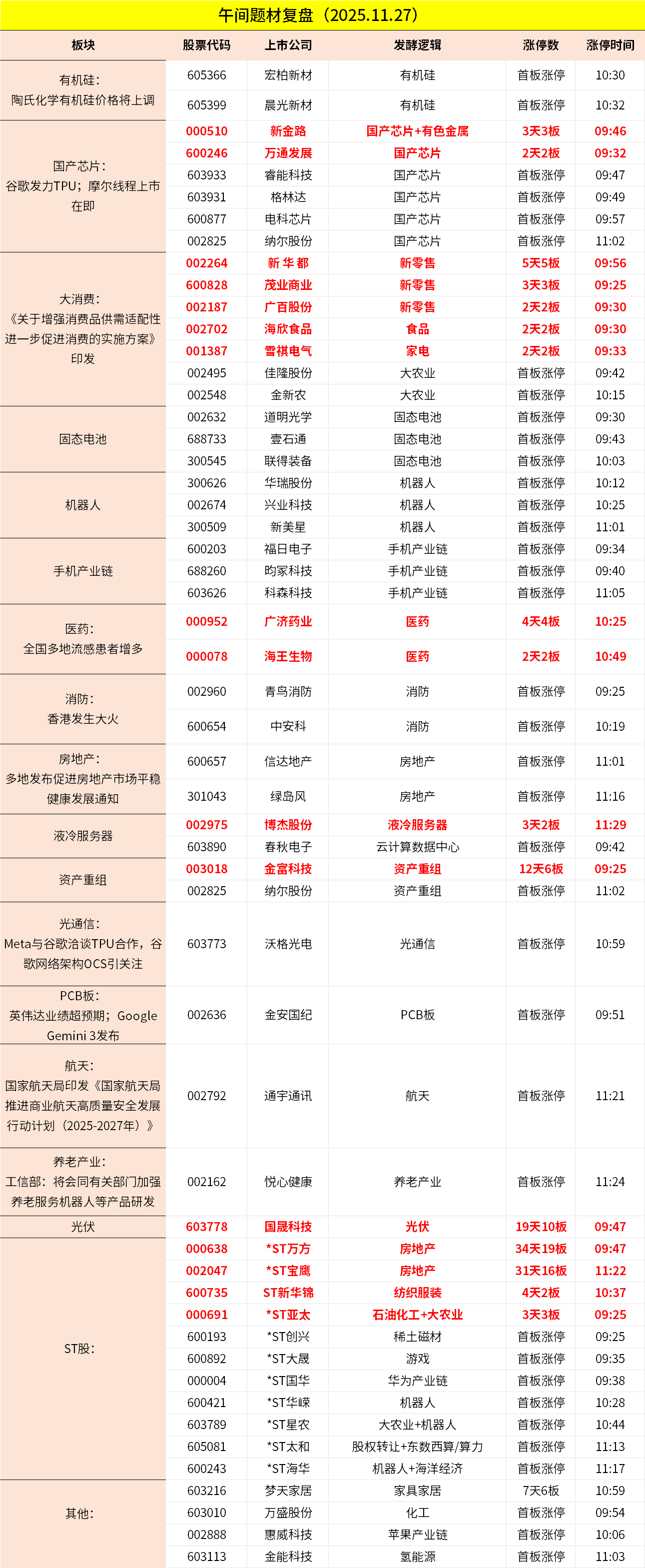 1、沪指早间震荡走强,创业板指冲高回落。有机硅板块走高,宏柏新材、晨光新材等涨停。消费电子板块拉升,惠威科技、福日电子等封板。芯片板块表现活跃,电科芯片、睿能科技涨停。算力硬件股延续强势,金安国际、沃格光电涨停。下跌方面,AI应用端调整,凯淳股份跌超10%。个股涨多跌少,沪深京三市超3300股飘红,上午半天成交1.1万亿。午间收盘沪指涨0.49%,深成指涨0.38%,创业板涨0.56%。