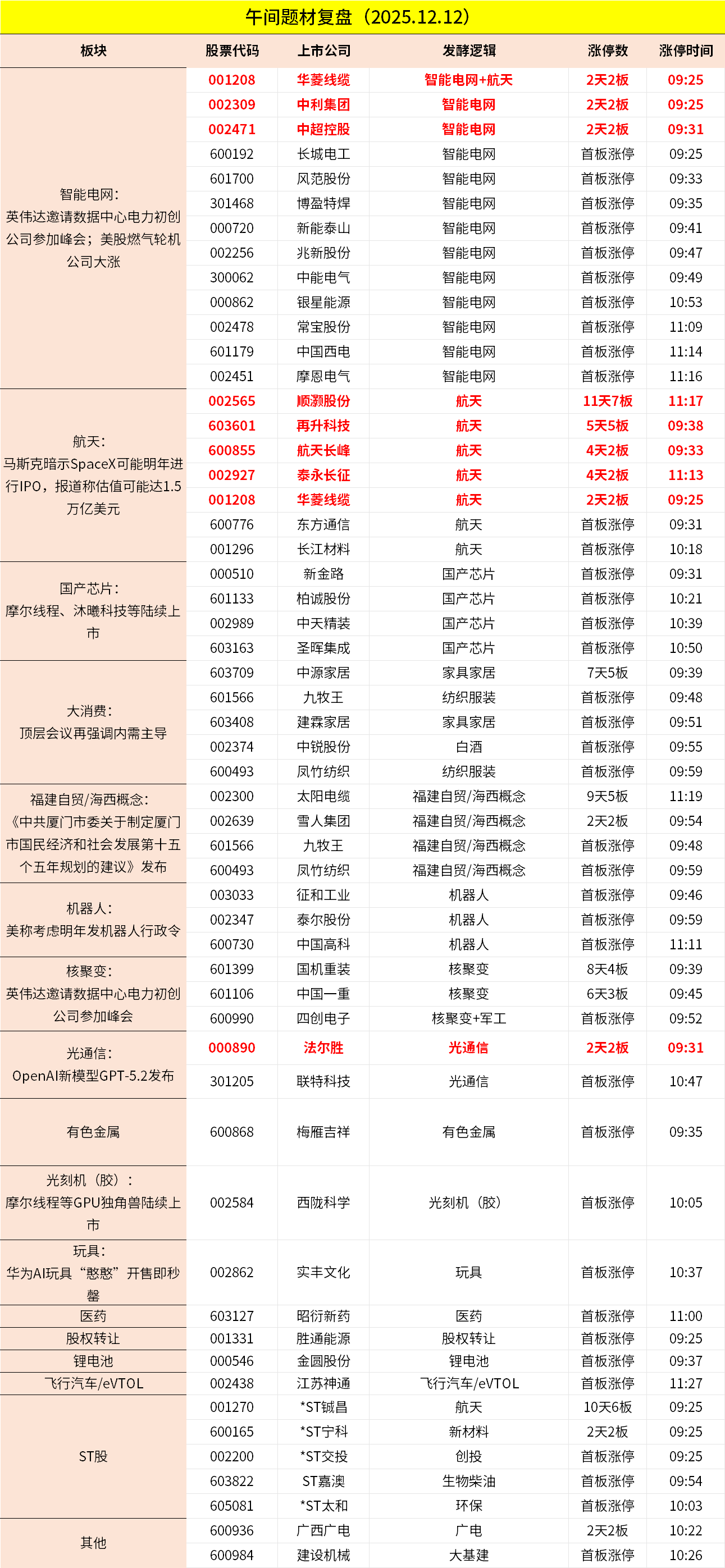 2、板块概念方面,电网设备、算力硬件、可控核聚变、商业航天等板块领涨;零售、海南、房地产、中药等板块领跌;