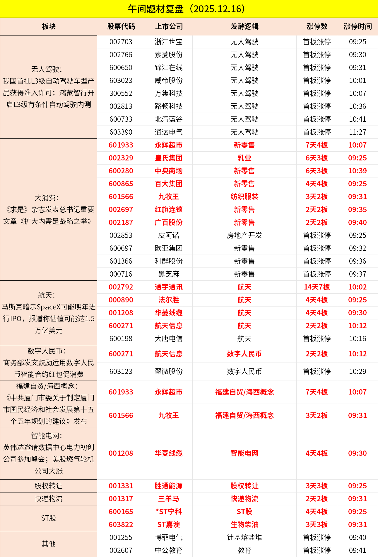 2、板块概念方面,零售、教育、食品、无人驾驶等板块领涨;军工、贵金属、商业航天、光伏风电等板块领跌;