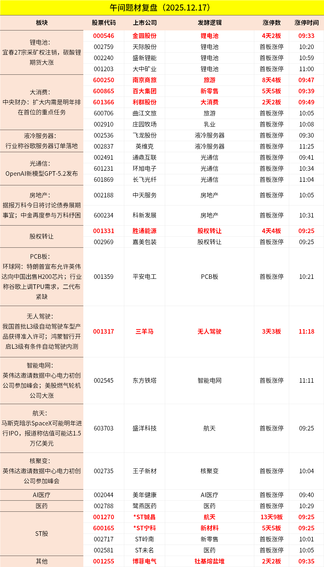 1、沪指早间窄幅震荡,创业板指涨超1%。锂矿股集体走强,盛新锂能、大中矿业等涨停。CPO等算力硬件股拉升,长飞光纤、通鼎互联等涨停。消费股继续活跃,百大集团5连板,曲江文旅等涨停。下跌方面,海南板块下挫,京粮控股、海南瑞泽跌停。指数黄白二线分化,个股跌多涨少,沪深京三市超3600股飘绿,上午半天成交1.04万亿。午间收盘沪指涨0.17%,深成指涨0.83%,创业板涨1.21%。