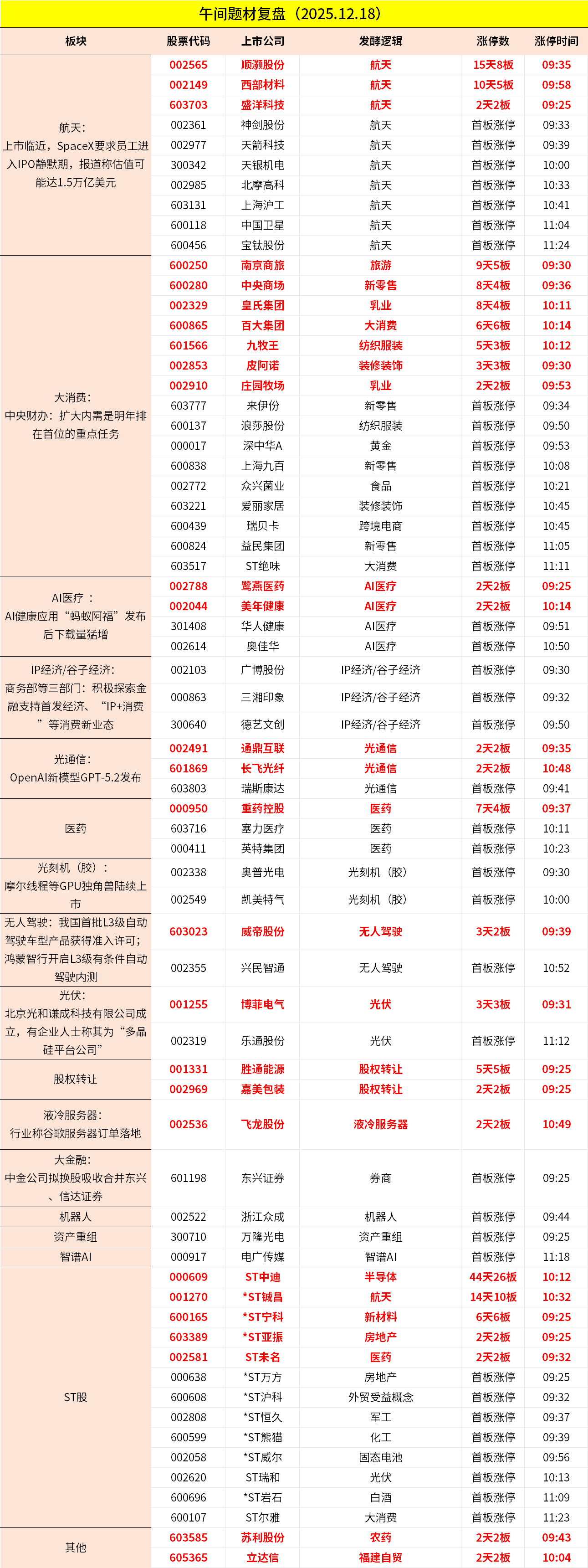 2、板块概念方面,AI医疗、商业航天、大消费、军工等板块领涨;海南、电池、券商、工程机械等板块领跌;