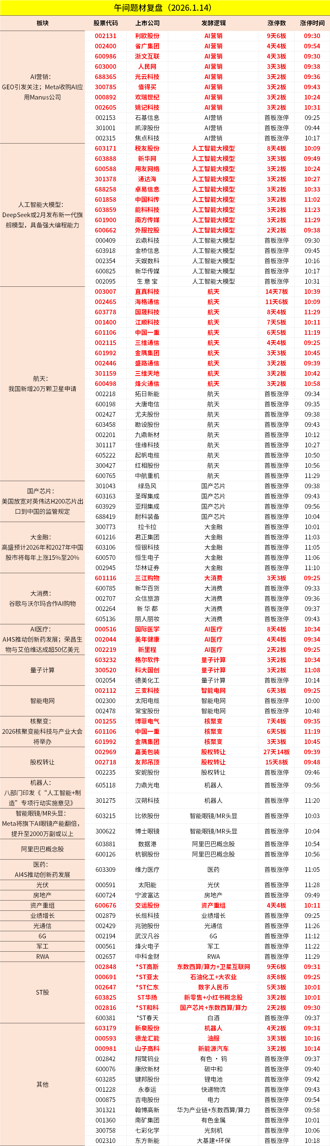 2、板块概念方面,AI营销、AI医疗、大金融、商业航天等板块领涨;银行、保险、民航机场等板块逆势下跌;