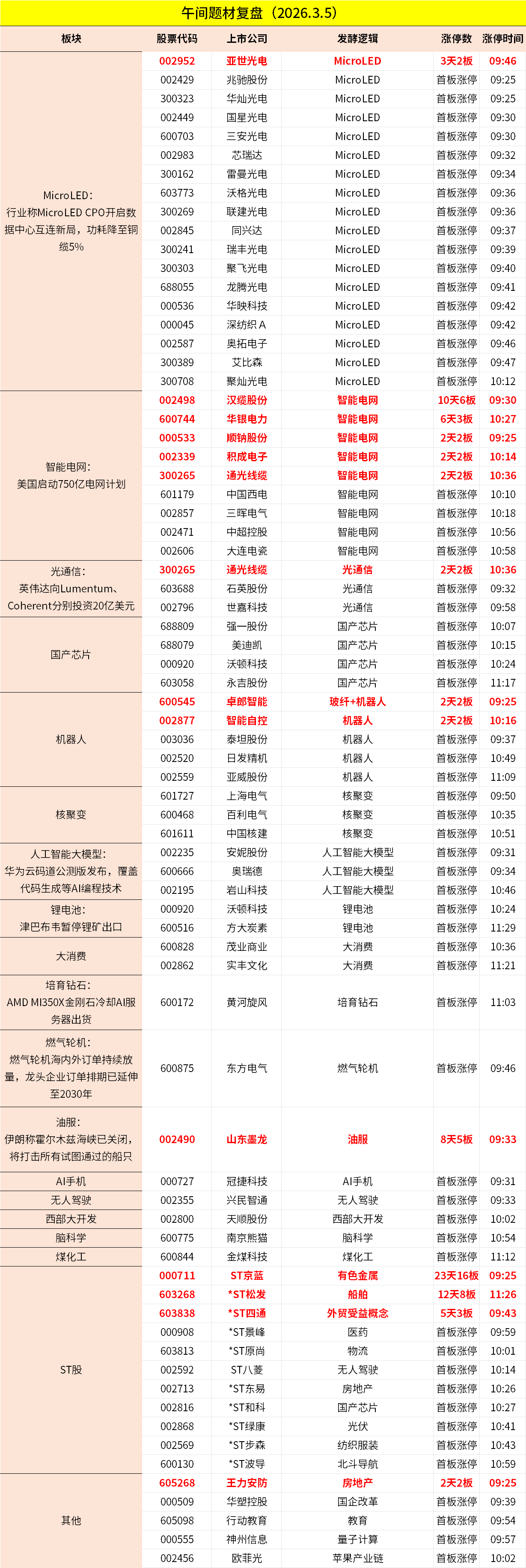 2、板块概念方面,MicroLED、电网设备、半导体芯片、光通信等板块领涨;油气、农业、燃气、化肥等板块领跌;