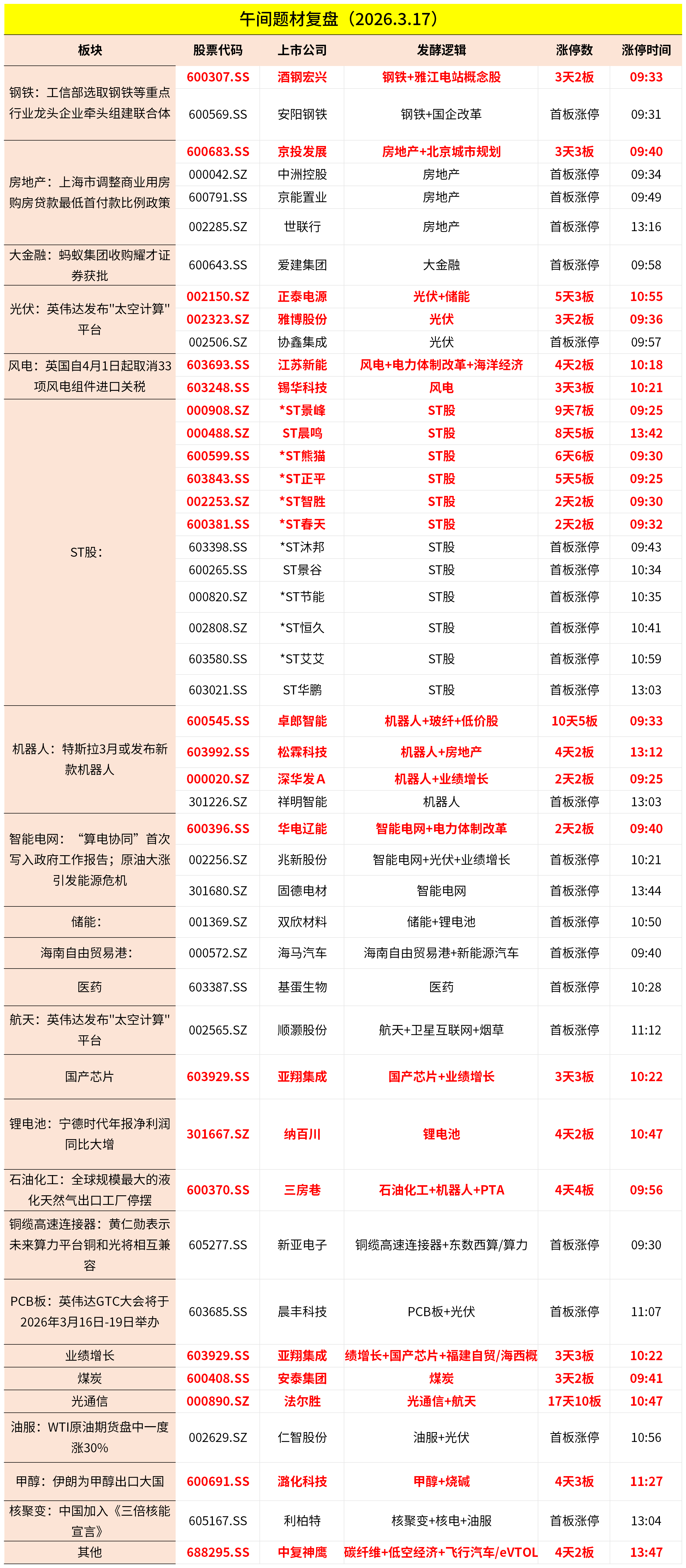 1、市场早间冲高回落,三大指数小幅下跌。大金融板块盘中走强,爱建集团涨停,国信证券、南华期货涨超5%。地产股迎来反弹,京能置业、中洲控股、京投发展涨停。光伏、储能板块反复活跃,正泰电源、雅博股份、协鑫集成等涨停。钢铁板块拉升,安阳钢铁、酒钢宏兴双双涨停。下跌方面,CPO等算力硬件股下挫,天通股份、可川科技触及跌停,炬光科技跌超10%。个股跌多涨少,沪深京三市超3400股飘绿,上午半天成交1.38万亿。午间收盘沪指跌0.04%,深成指跌0.4%,创业板跌0.58%。