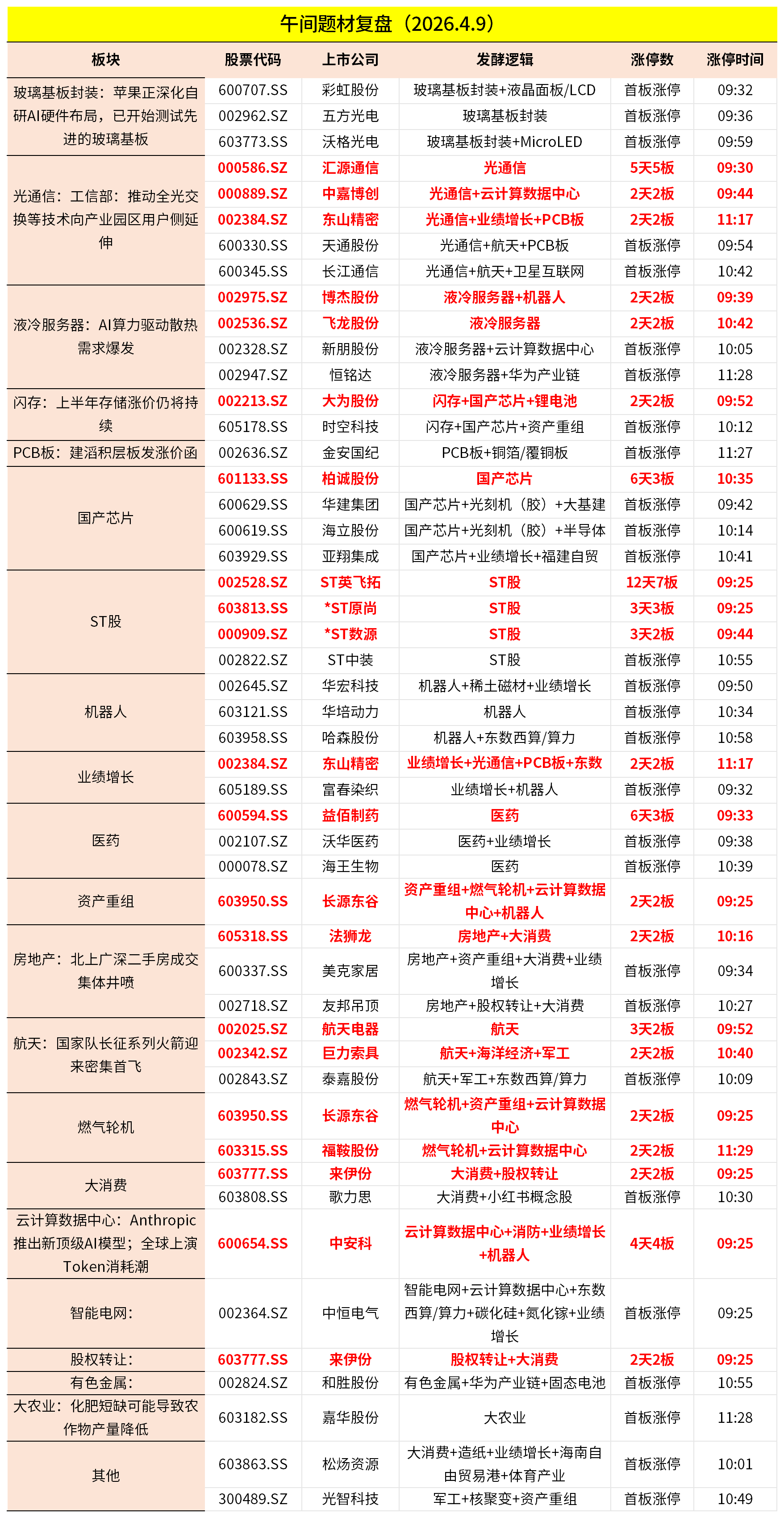 2、板块概念方面,玻璃基板封装、光通信、液冷服务器、PCB等板块领涨;旅游、游戏、软件开发、医药等板块领跌;