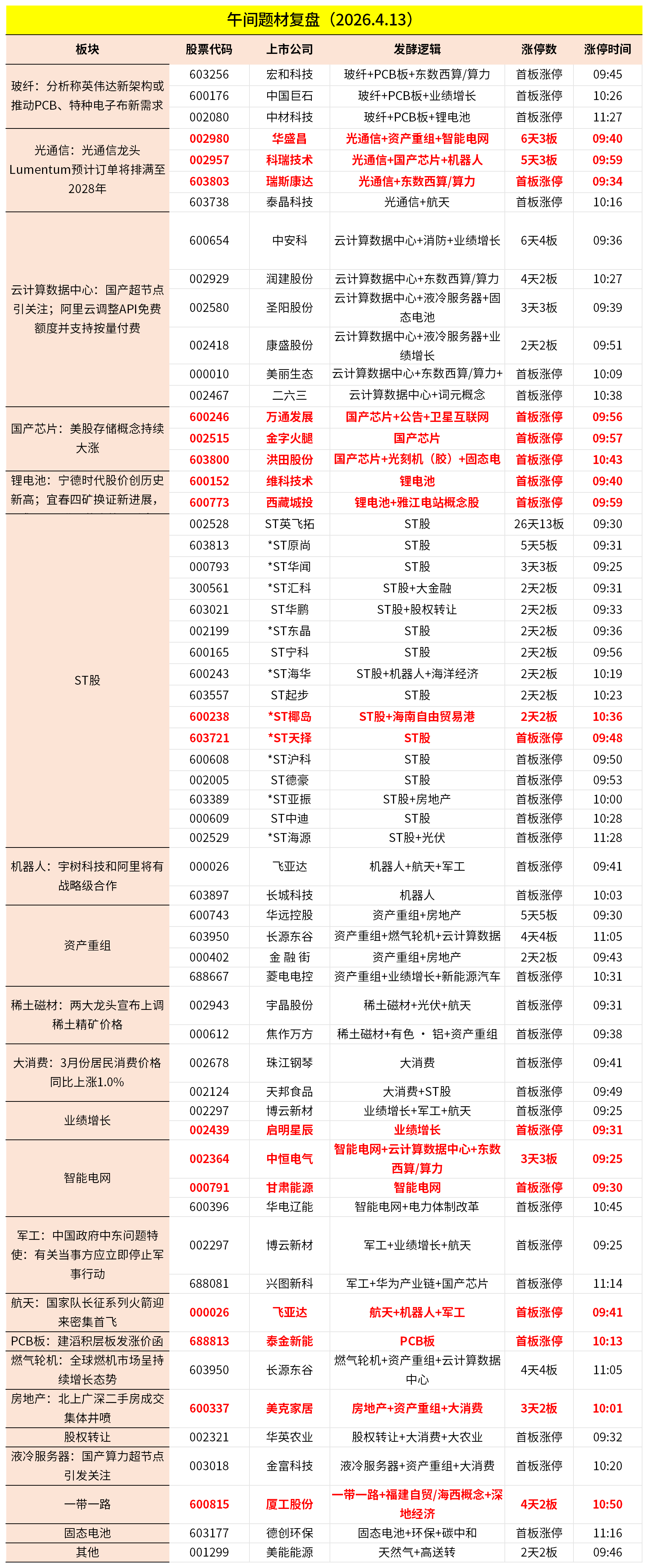 1、市场早间震荡分化,创业板指冲高回落,宁德时代盘中涨超4%,股价创历史新高。玻纤概念股集体爆发,中国巨石涨停创新高,宏和科技、中材科技封板。CPO概念股持续走强,瑞斯康达、华盛昌、泰晶科技等多股涨停。猪肉、鸡肉股拉升,华英农业、天邦食品涨停。下跌方面,游戏股集体调整,恺英网络跌停,冰川网络跌超10%。个股跌多涨少,沪深京三市超3500股飘绿,上午半天成交1.41万亿。午间收盘沪指跌0.17%,深成指涨0.19%,创业板涨0.39%。